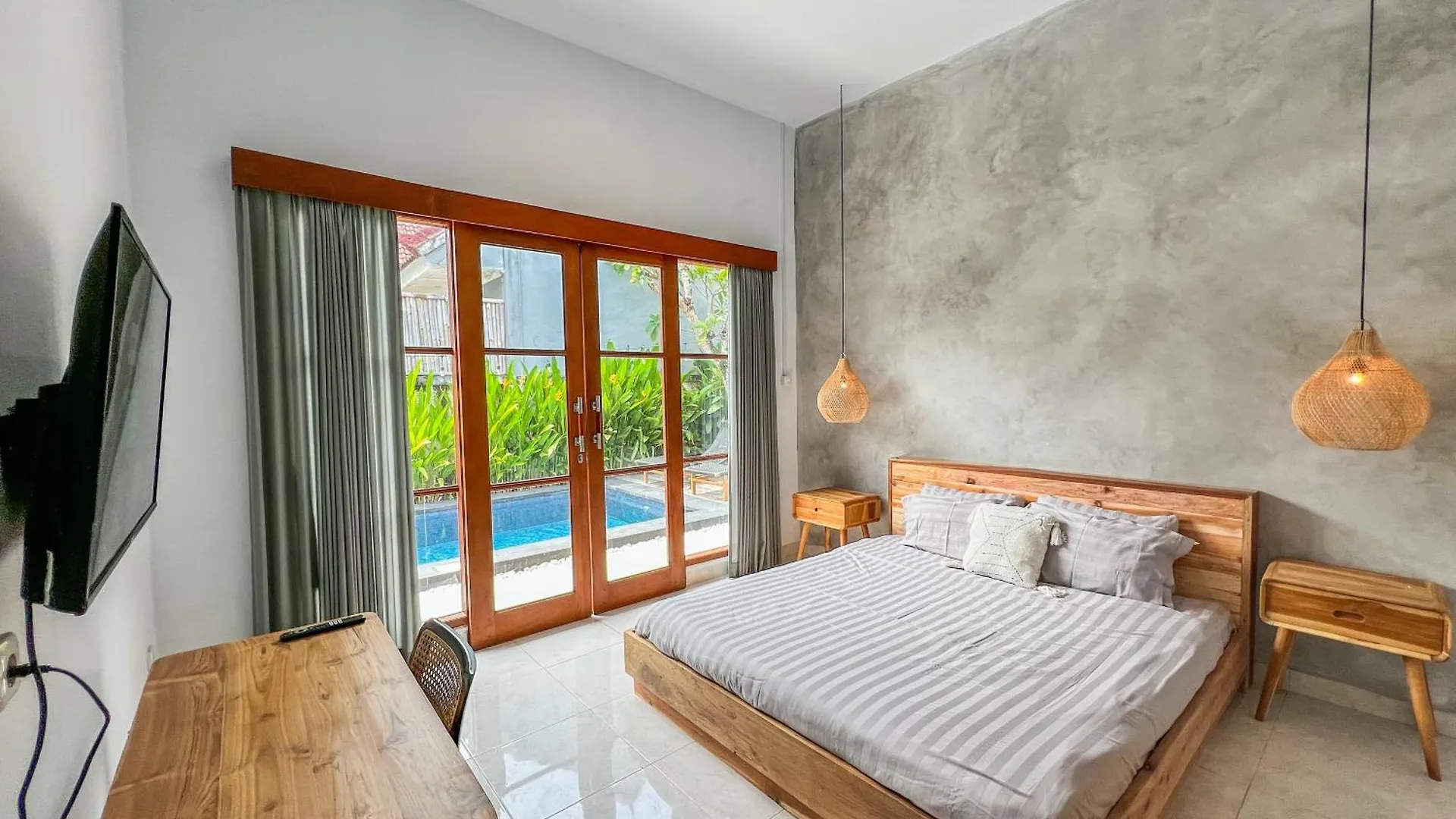 Island Boy Guesthouse N Prime Location In Canggu的客房均设有写字台,高速互联网 和气候控制,让旅客拥有宾至如归的感觉。